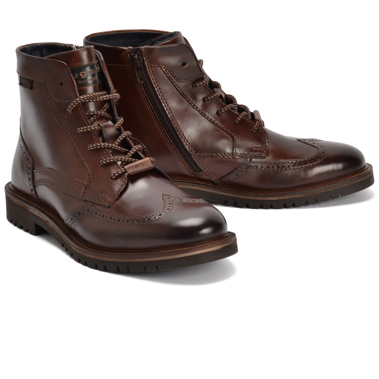 Contemporary leather dress boot featuring six-eyelet lacing for a secure fit, complemented by a side zip for quick and convenient access. A durable rubber outsole provides reliable grip, while the cushioned insole delivers shock absorption for comfortable walking. This style features a removable insole that can replaced with an orthotic.