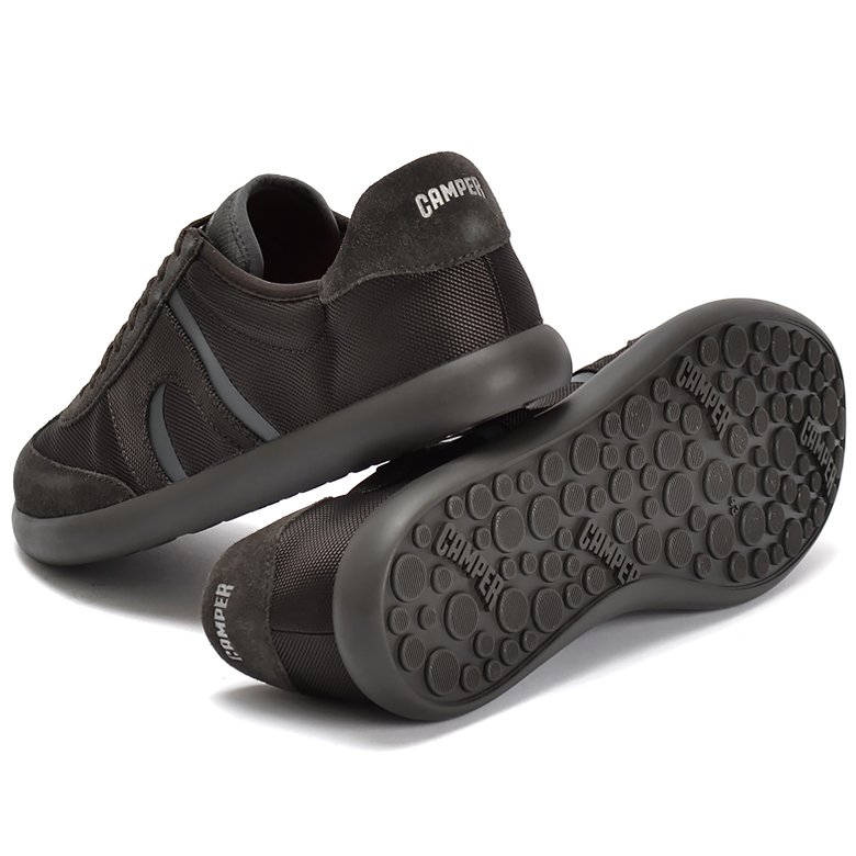 Lightweight two-tone Camper PELOTAS SOLLER suede leather and textile sneaker featuring an 8-eyelet lace-up design for a secure, comfortable fit. The strong cemented construction provides cushioned support and flexible movement, while the durable rubber outsole delivers reliable grip for confident walking.