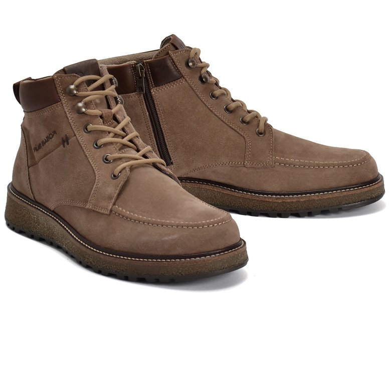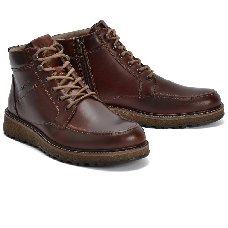 Leather ankle boot featuring 4 eyelet and 2 hook fastening for a secure, supportive fit. Also with side zip access for quick and convenient access. Designed with a padded collar for added comfort around the ankle and a soft cushioned insole to enhance walking comfort, which is removable to accommodate custom orthotics. A cushioned rubber midsole provides effective shock absorption, while the durable rubber outsole delivers reliable grip.