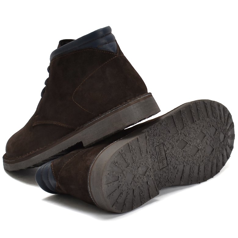 This classic suede leather desert boot features a simple 3-eyelet lacing design for timeless style. The traditional crepe rubber sole offers cushioned comfort and excellent grip for everyday wear. A breathable leather insole and lining help keep feet cool in warm weather, while the premium calf-suede leather upper adds a refined, sophisticated look.