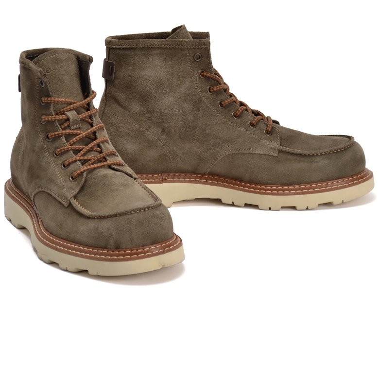 Contemporary workwear-inspired leather boot featuring seven-eyelet lacing for a secure fit. Crafted from premium oiled suede with a leather lining for breathability. A cushioned insole provides shock absorption while walking, complemented by a durable rubber outsole for reliable grip.