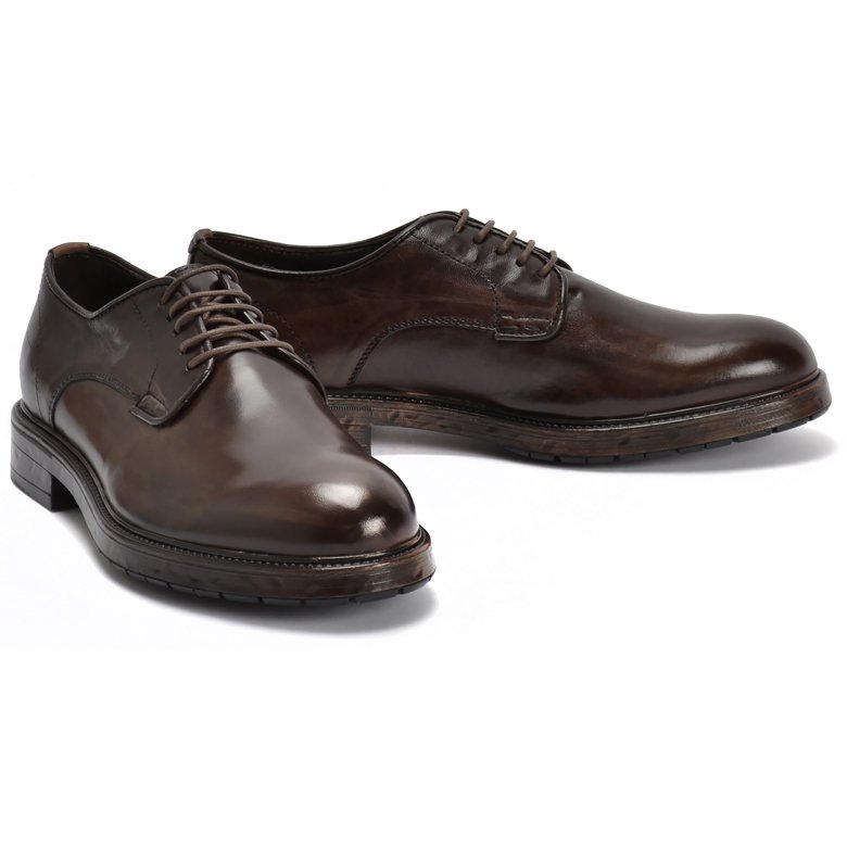 Plain vamp leather derby shoe crafted from soft leather, featuring 5 eyelet lacing for a secure fit. The leather lining ensures breathability, while a cushioned insole provides comfort underfoot. Finished with a durable rubber outsole for reliable grip.