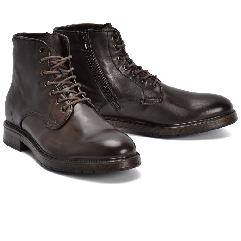 Plain vamp leather boot crafted from soft leather, featuring seven-eyelet lacing for a secure fit. An inside zip allows for quick and easy access. The leather lining ensures breathability, while a cushioned insole provides comfort underfoot. Finished with a durable rubber outsole for reliable grip.