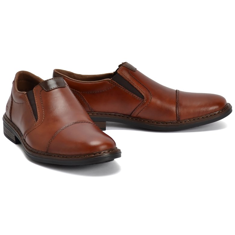 Lightweight leather and man-made slip-on design with twin gusset entry for easy wear. Built with strong stitched construction and a durable rubber sole. Extra-wide fitting provides enhanced comfort throughout the day. Incorporates Rieker Anti-stress technology, offering a lightweight, flexible, and shock-absorbent design for exceptional all-day comfort.