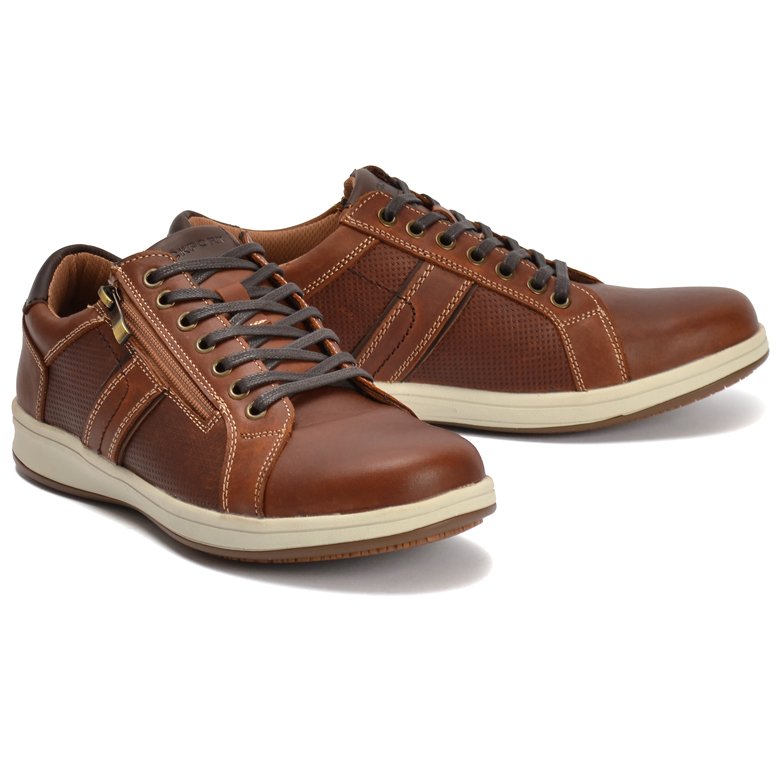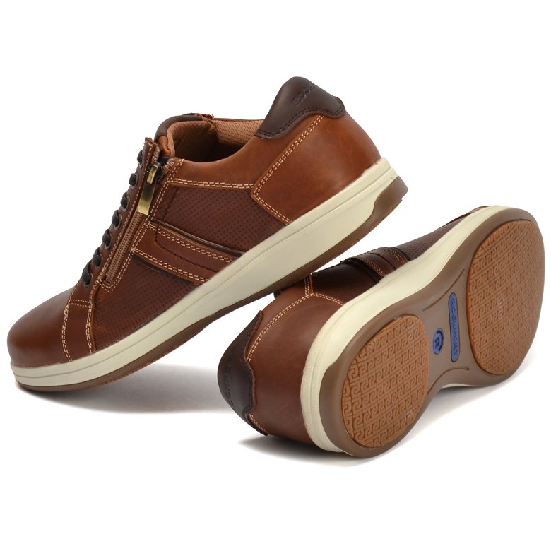 7-eyelet leather lace-up shoe with side zip for easy access. Generous fit for added comfort. Lightweight soft rubber midsole provides cushioning during walking. TruTech memory-foam midsole which provides a softer landing for your heel-strike when walking. The insole is also removable to accommodate custom orthotics. Padded neck and collar offer support under the ankle.